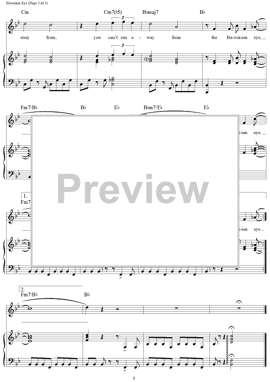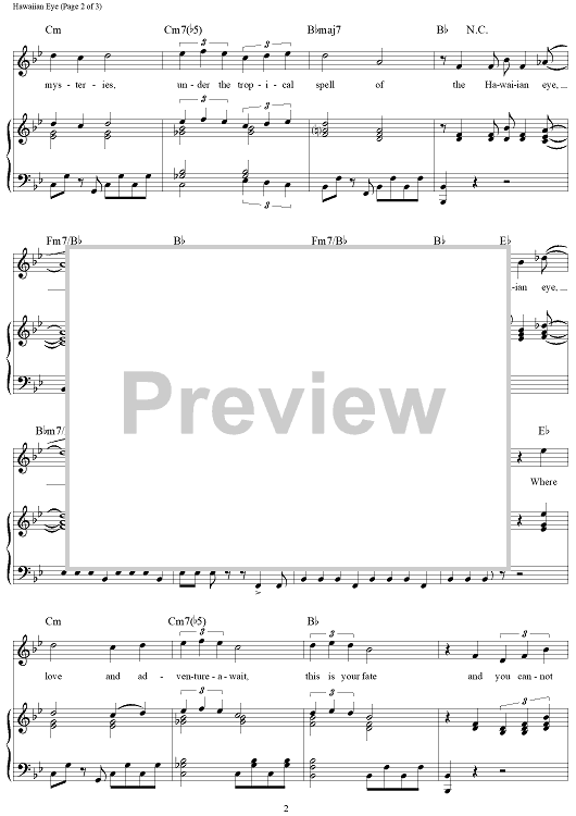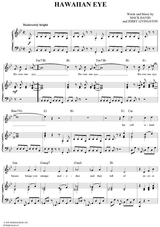 Digital Sheet Music for Hawaiian Eye by Jerry Livingston, Mack David scored for Piano/Vocal/Chords; id:116286
