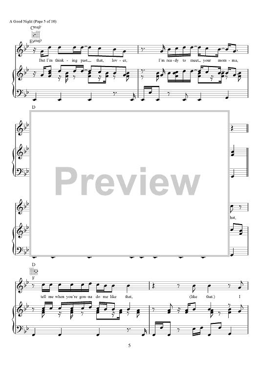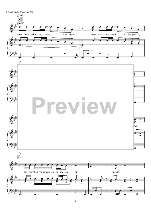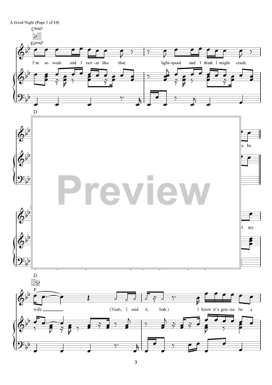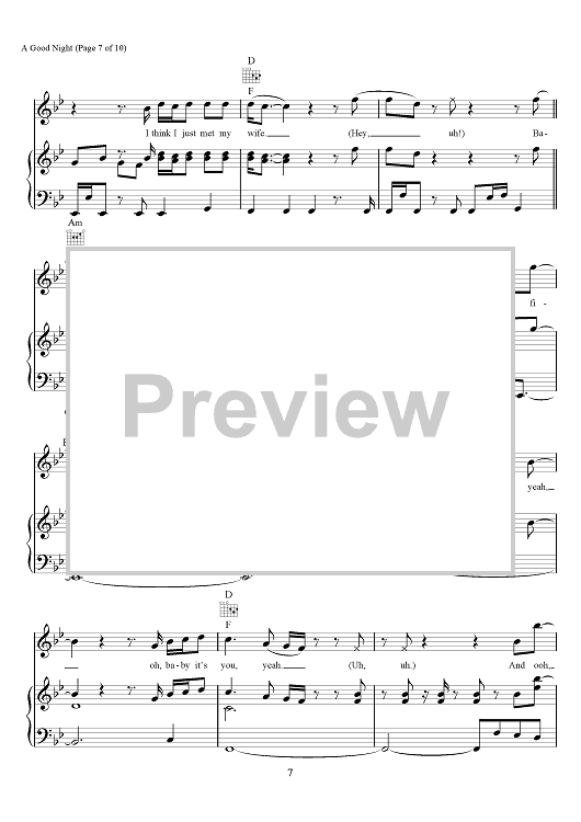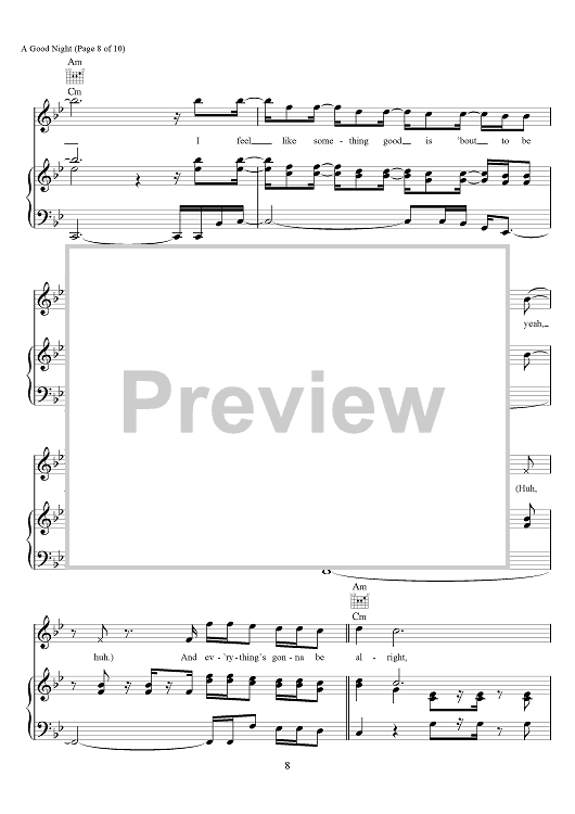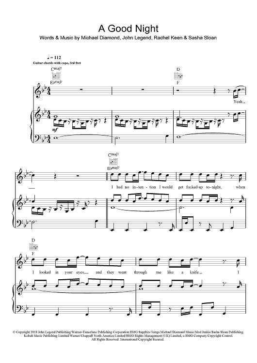 Digital Sheet Music for A Good Night by John Legend, Mike D, Sasha Sloan, Rachel Keen scored for Piano/Vocal/Chords; id:466439