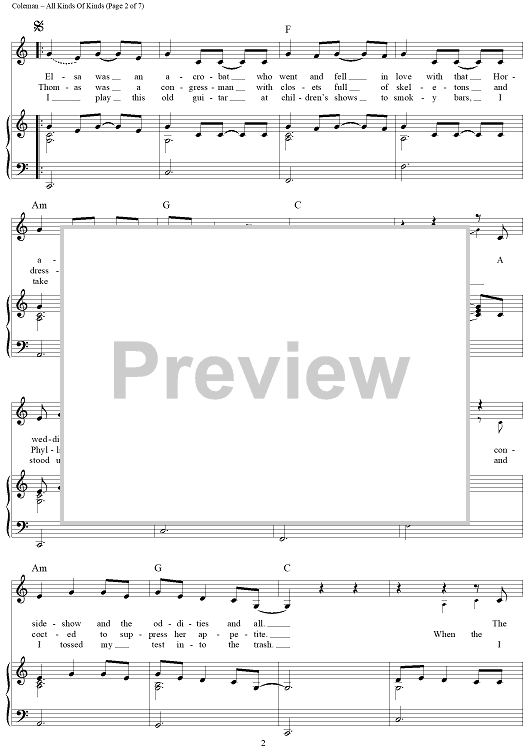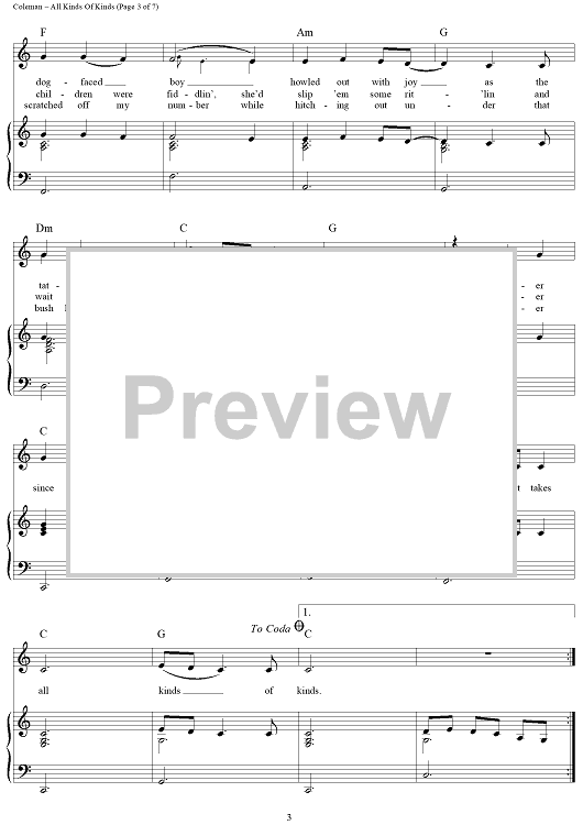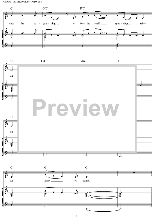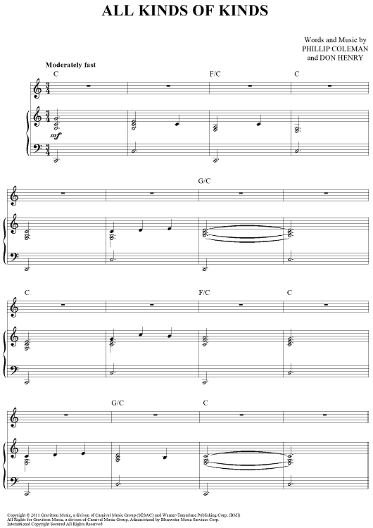 Digital Sheet Music for All Kinds of Kinds by Don Henry, Phillip Coleman, Miranda Lambert scored for Piano/Vocal/Chords; id:443784