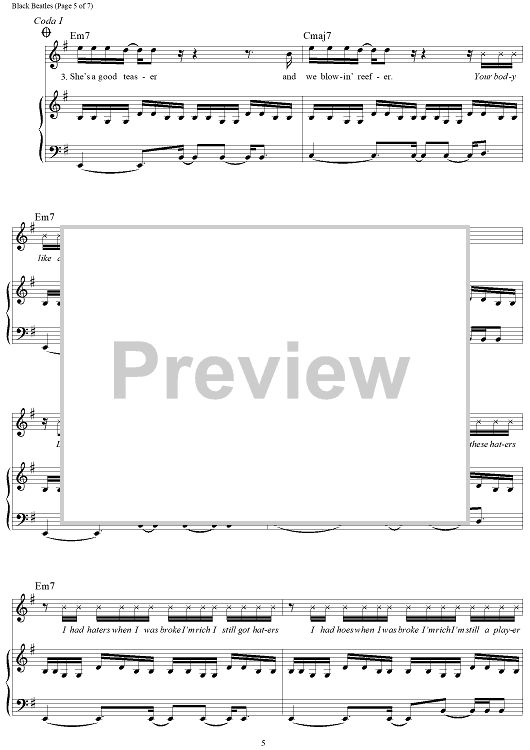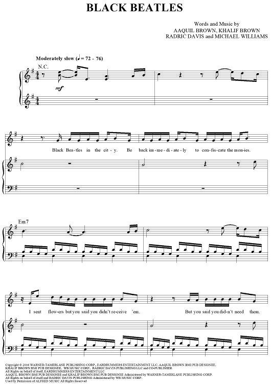 Digital Sheet Music for Black Beatles by Aaquil Brown, Khalif Brown, Radric Davis, Michael Williams, Rae Sremmurd scored for Piano/Vocal/Chords; id:463233