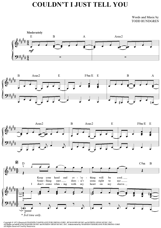 "Couldn't I Just Tell You" Sheet Music by Todd Rundgren