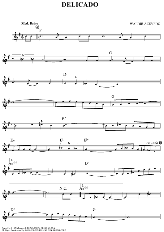 Digital Sheet Music for Delicado by Waldir Azevedo scored for Lead Sheet; id:445610