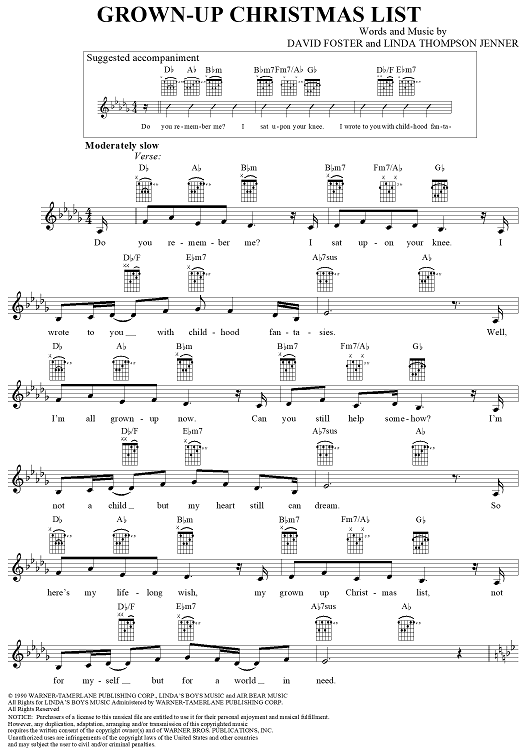 "Grown-Up Christmas List" Sheet Music by Linda Thompson