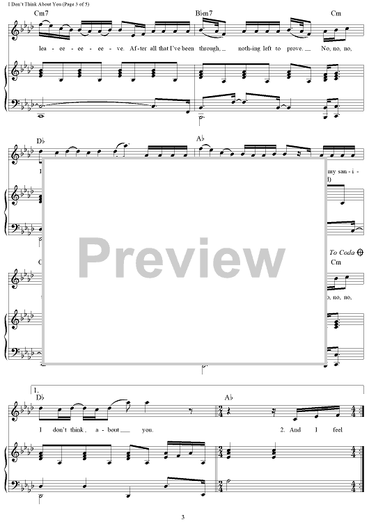 "I Don't Think About You" Sheet Music by Kelly Clarkson