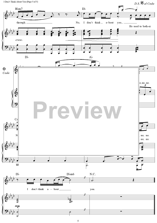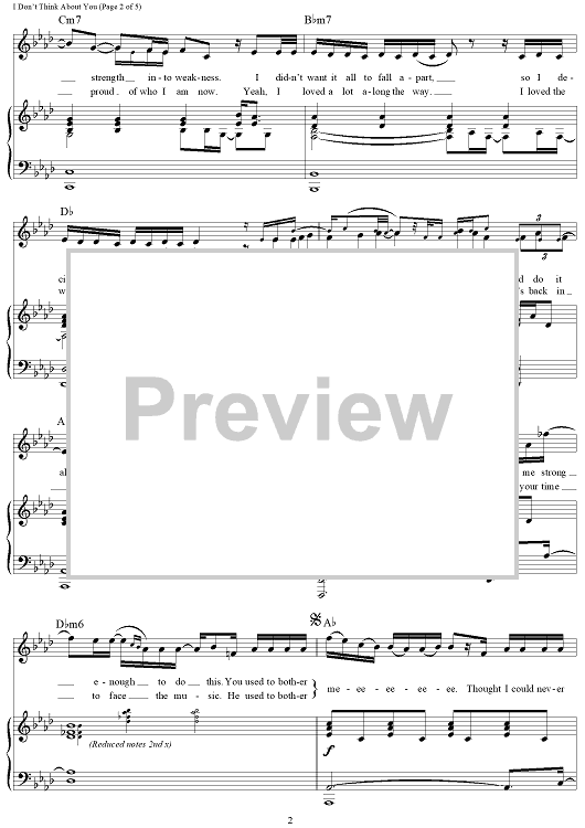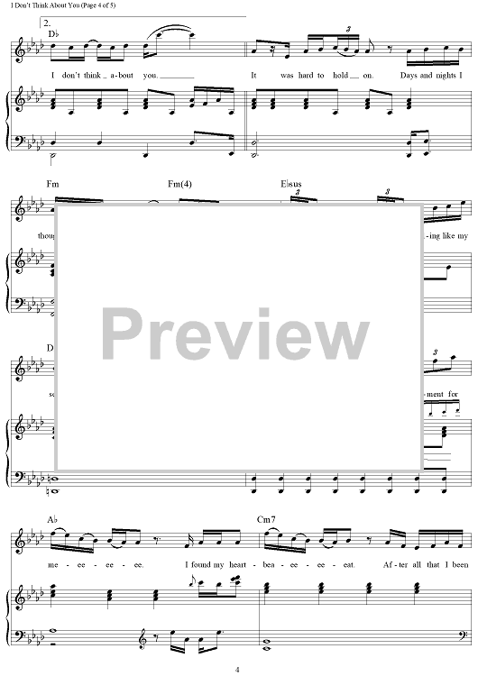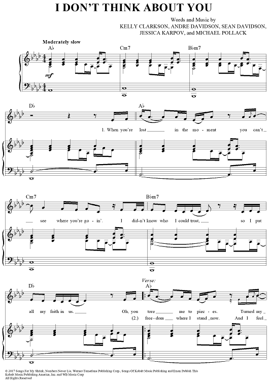 Digital Sheet Music for I Don't Think About You by Kelly Clarkson, Michael Pollack, Andre Davidson, Sean Davidson, Jessica Karpov scored for Piano/Vocal/Chords; id:465805