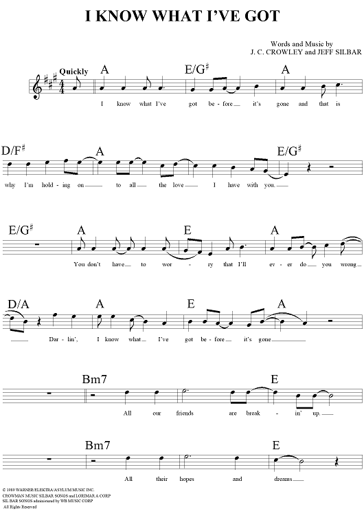 Digital Sheet Music for I Know What I've Got by Jeff Silbar, J. C. Crowley scored for Lead Sheet; id:271831