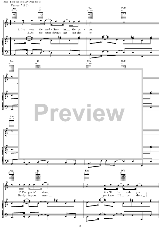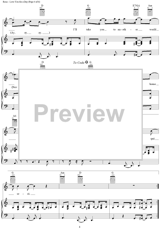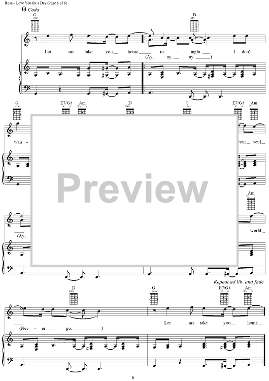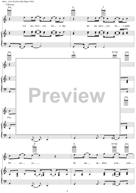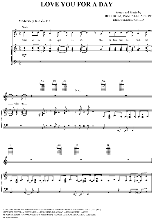 Digital Sheet Music for Love You for a Day by Desmond Child, Robi Rosa, Ricky Martin, Randall Barlow scored for Piano/Vocal/Chords; id:255851