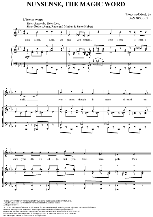 "Nunsense, The Magic Word" Sheet Music by Dan Goggin