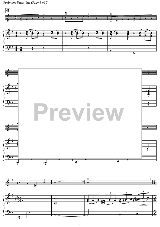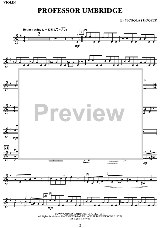 Digital Sheet Music for Professor Umbridge by Nicholas Hooper scored for Violin/Piano; id:498046