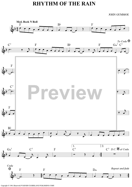 Digital Sheet Music for Rhythm of the Rain by John Gummoe scored for Lead Sheet; id:456580