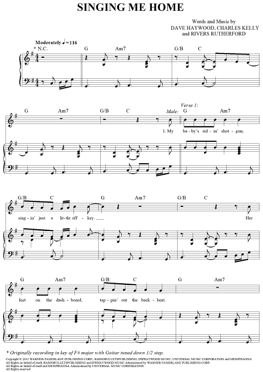 Digital Sheet Music for Singing Me Home by Rivers Rutherford, Lady Antebellum, Charles Kelley, Dave Haywood scored for Piano/Vocal/Chords; id:449318