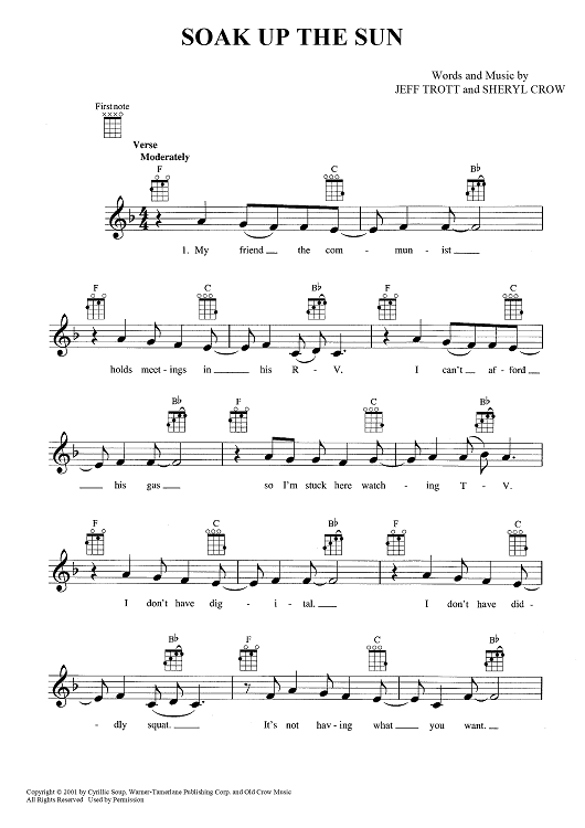 Digital Sheet Music for Soak Up The Sun by Sheryl Crow, Jeff Trott scored for Ukulele/Vocal; id:444281