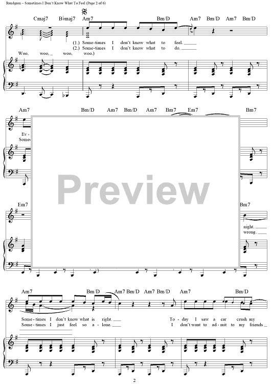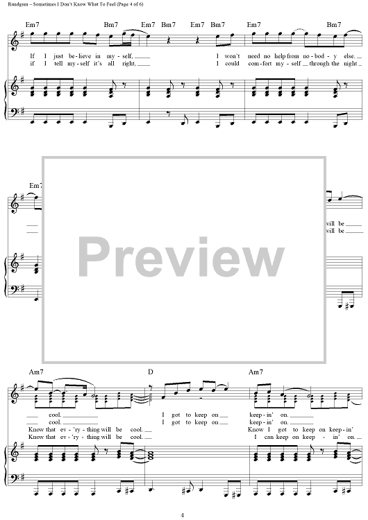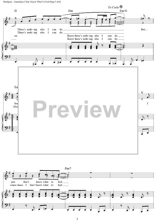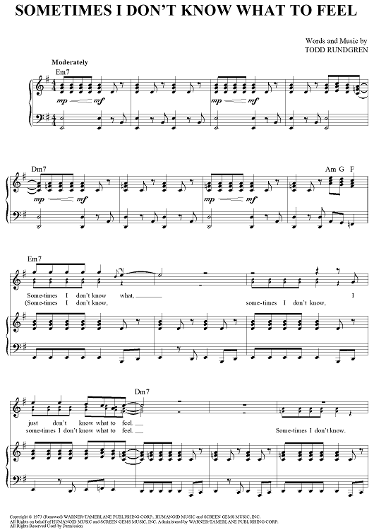 "Sometimes I Don't Know What To Feel" Sheet Music by Todd Rundgren