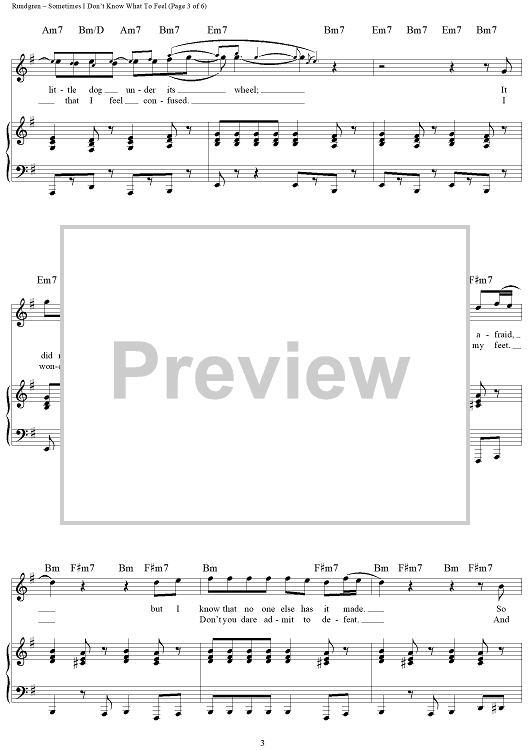 Digital Sheet Music for Sometimes I Don't Know What To Feel by Todd Rundgren scored for Piano/Vocal/Chords; id:460307