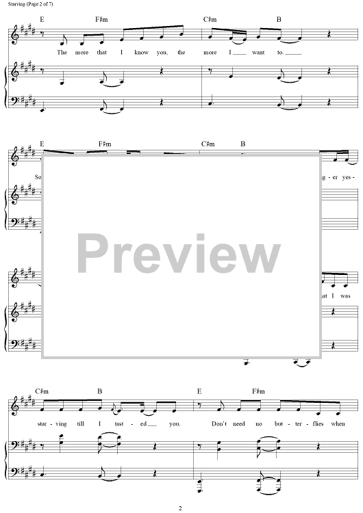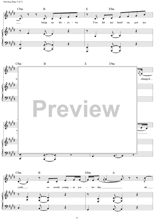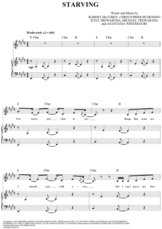 Digital Sheet Music for Starving by Hailee Steinfeld, Robert McCurdy, Christopher Petrosino, Michael Trewartha, Anastasia Whiteracre scored for Piano/Vocal/Chords; id:461106