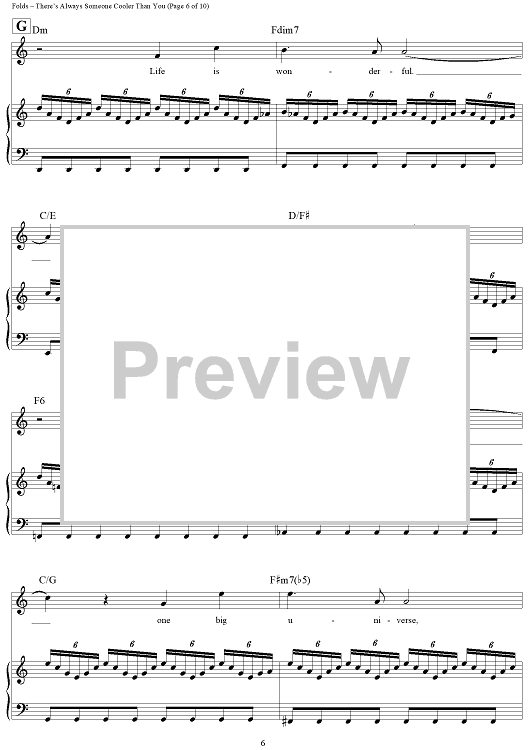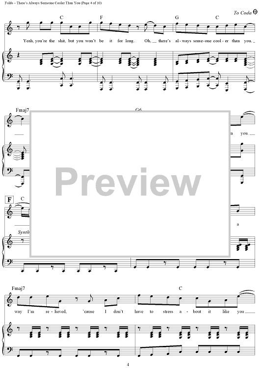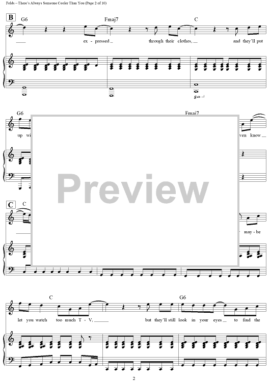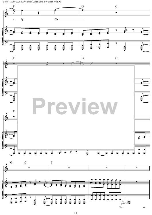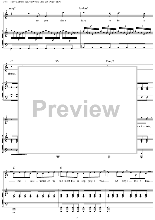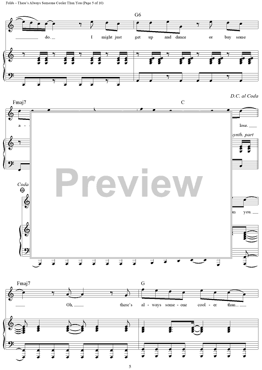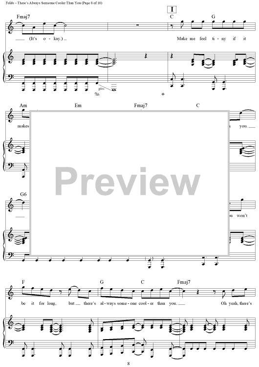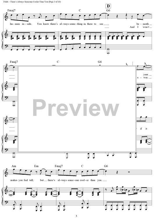 Digital Sheet Music for There's Always Someone Cooler Than You by Ben Folds scored for Piano/Vocal/Chords; id:451696
