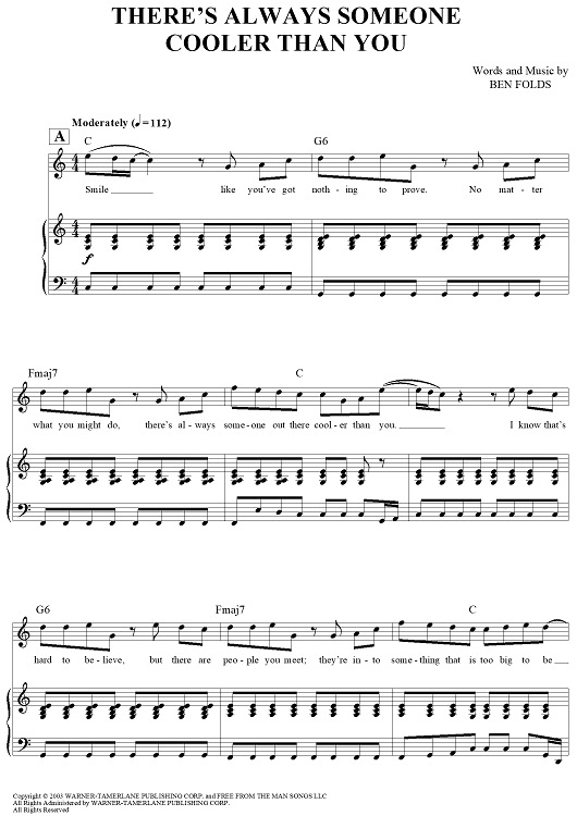 "There's Always Someone Cooler Than You" Sheet Music by Ben Folds