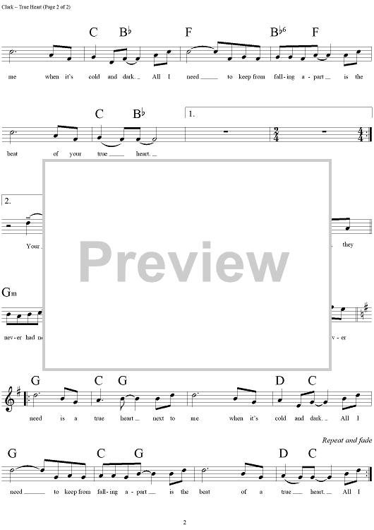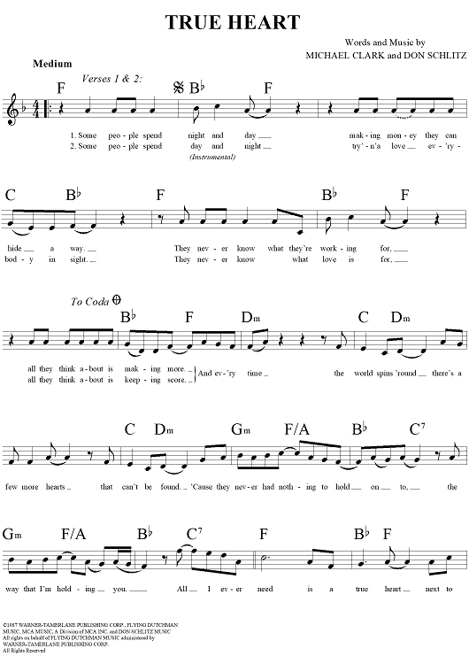 Digital Sheet Music for True Heart by Don Schlitz, Michael Clark, The Oak Ridge Boys scored for Lead Sheet; id:272727