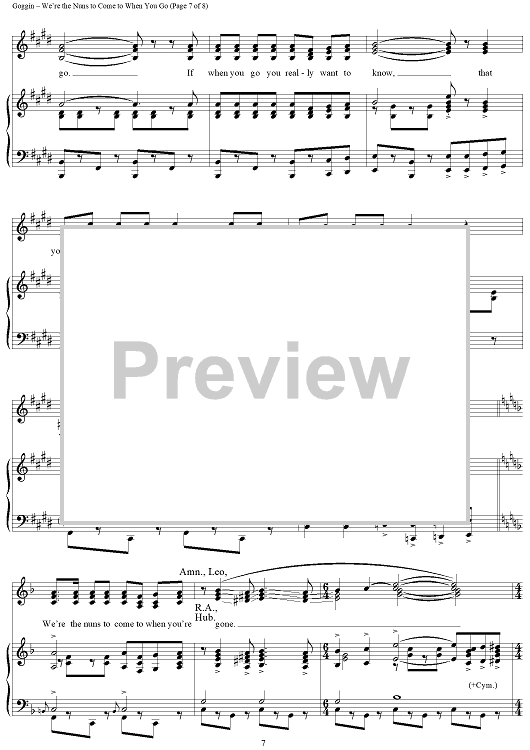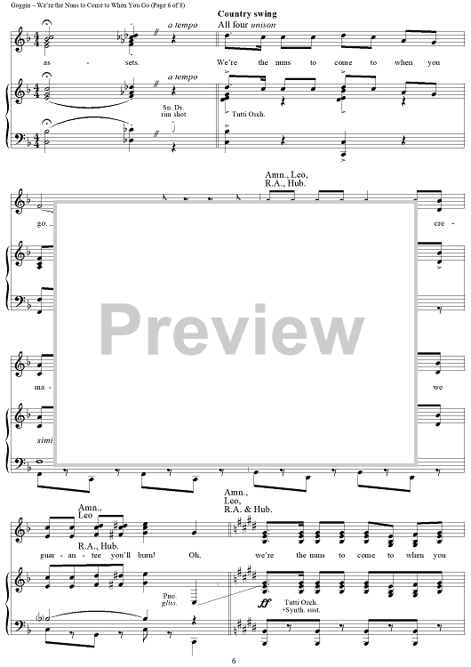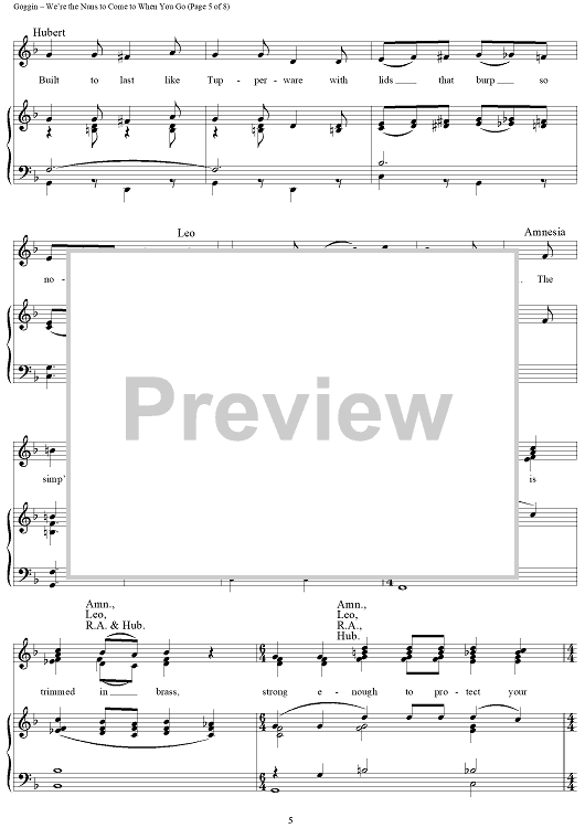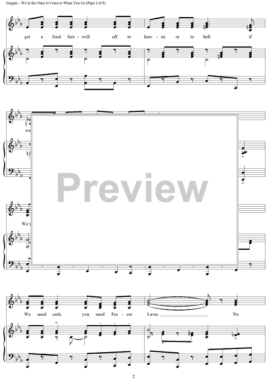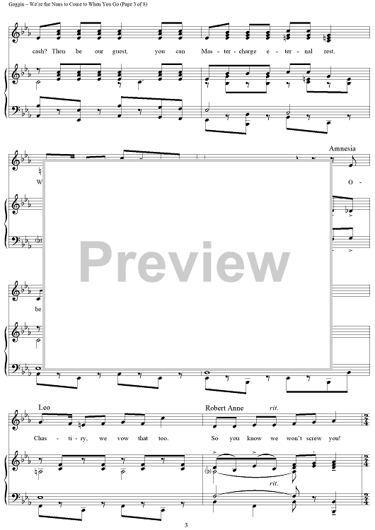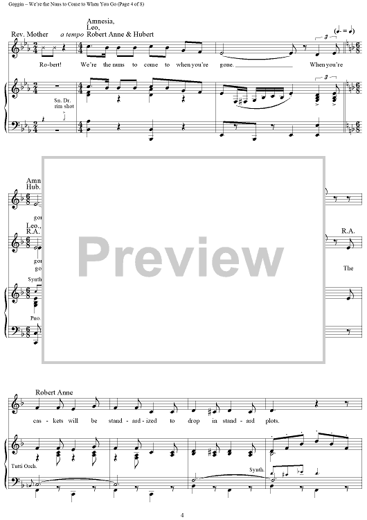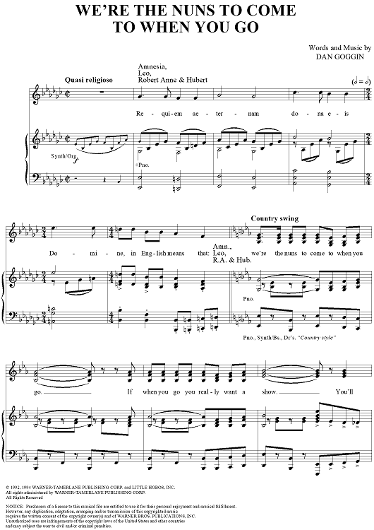Digital Sheet Music for We're The Nuns To Come To When You Go by Dan Goggin scored for Piano/Vocal/Chords; id:313400