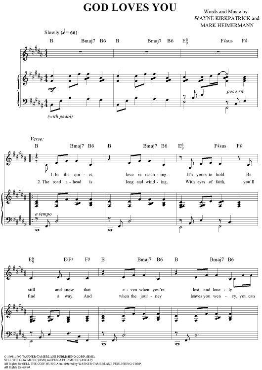 Digital Sheet Music for God Loves You by Wayne Kirkpatrick, Jaci Velasquez, Mark Heimermann scored for Piano/Vocal/Chords; id:250070