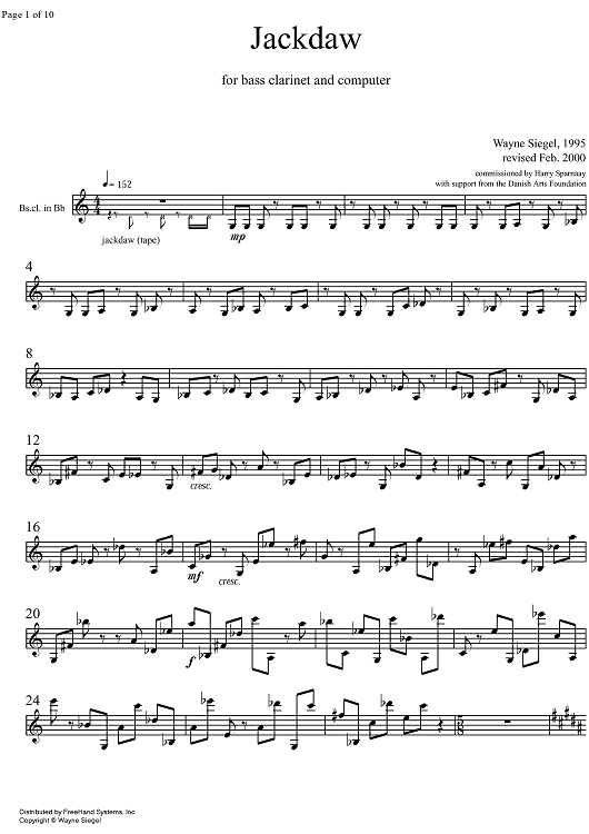 "Jackdaw" Sheet Music by Wayne Siegel