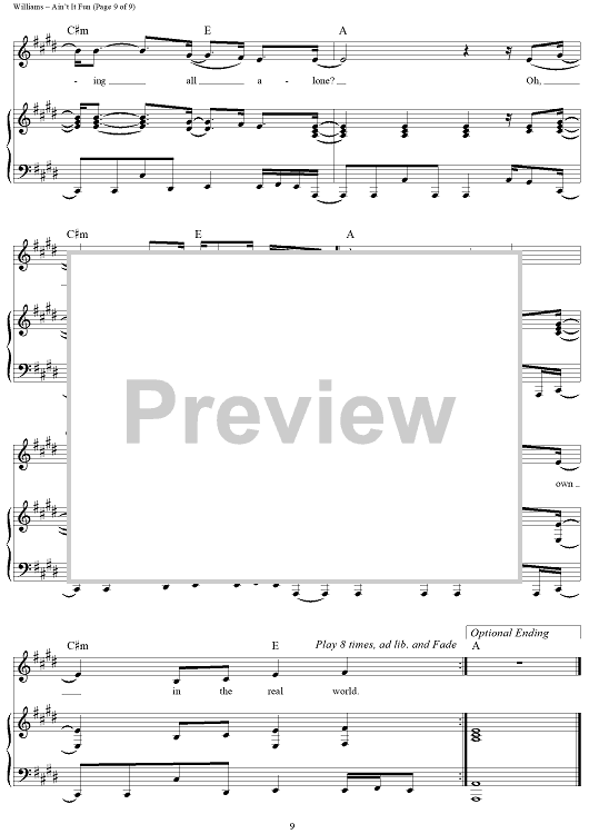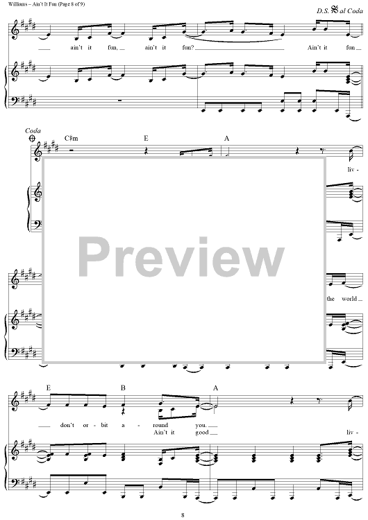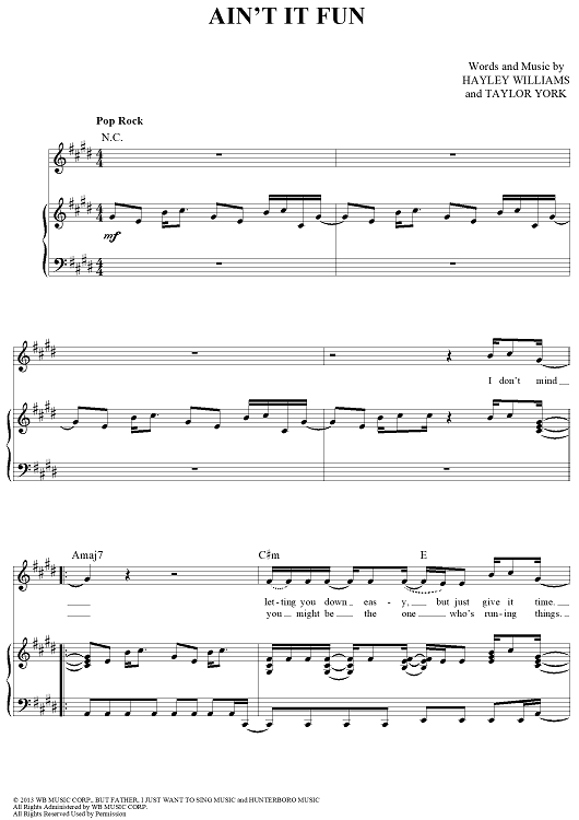 Digital Sheet Music for Ain't It Fun by Hayley Williams, Paramore, Taylor York scored for Piano/Vocal/Chords; id:441489