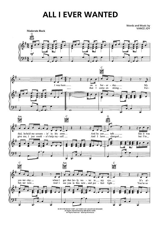 Digital Sheet Music for All I Ever Wanted by Vance Joy scored for Piano/Vocal/Chords; id:458992