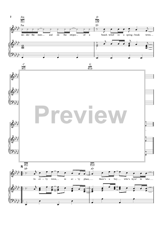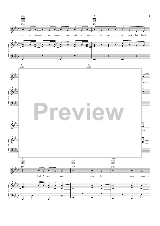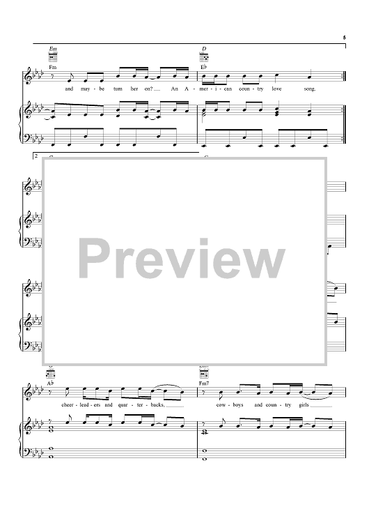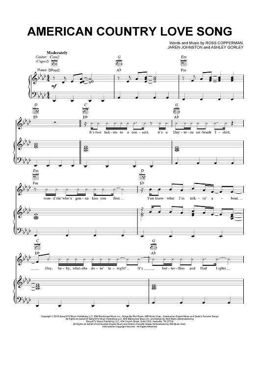 Digital Sheet Music for American Country Love Song by Ashley Gorley, Jake Owen, Jaren Johnston, Ross Copperman scored for Piano/Vocal/Chords; id:461110
