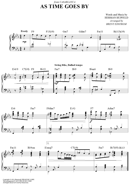 Digital Sheet Music for As Time Goes By by Herman Hupfeld, Brent Edstrom scored for Piano Solo; id:458083