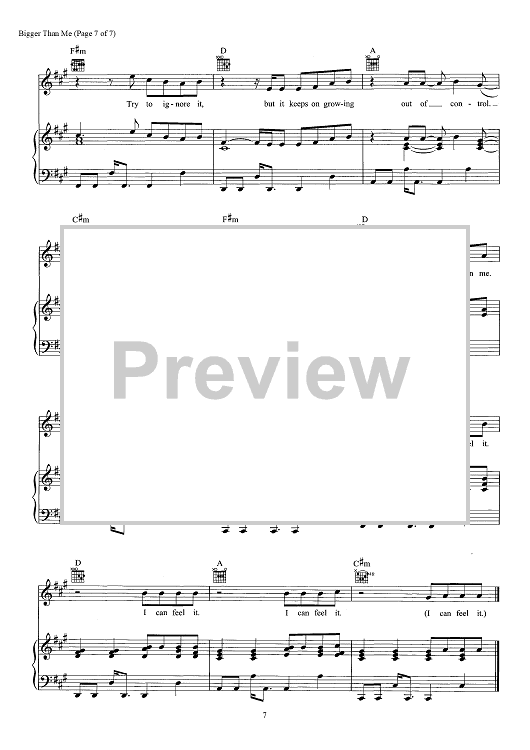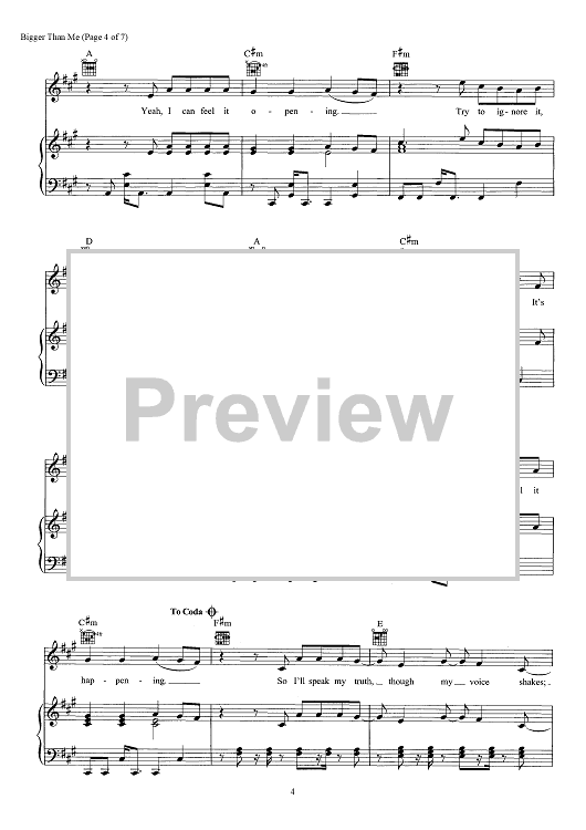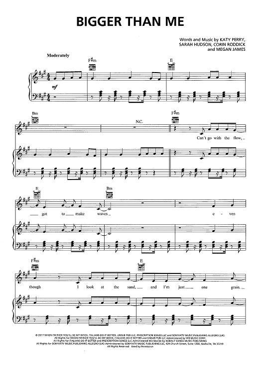 Digital Sheet Music for Bigger Than Me by Katy Perry, Sarah Hudson, Corin Roddick, Megan James scored for Piano/Vocal/Chords; id:466257
