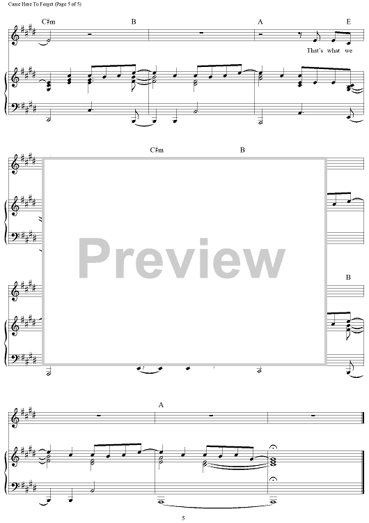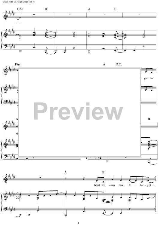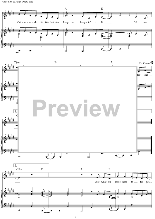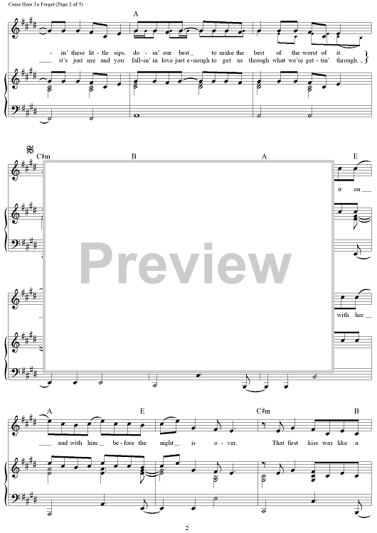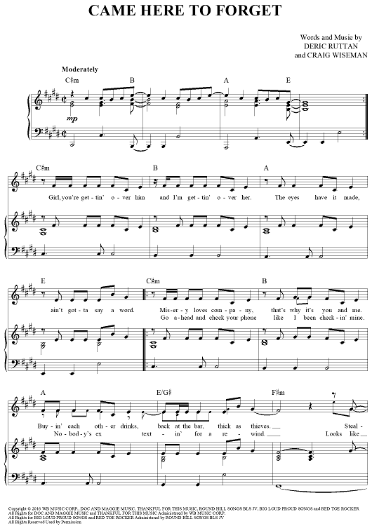 Digital Sheet Music for Came Here To Forget by Craig Wiseman, Blake Shelton, Deric Ruttan scored for Piano/Vocal/Chords; id:457355