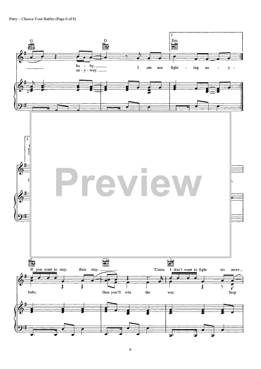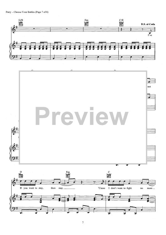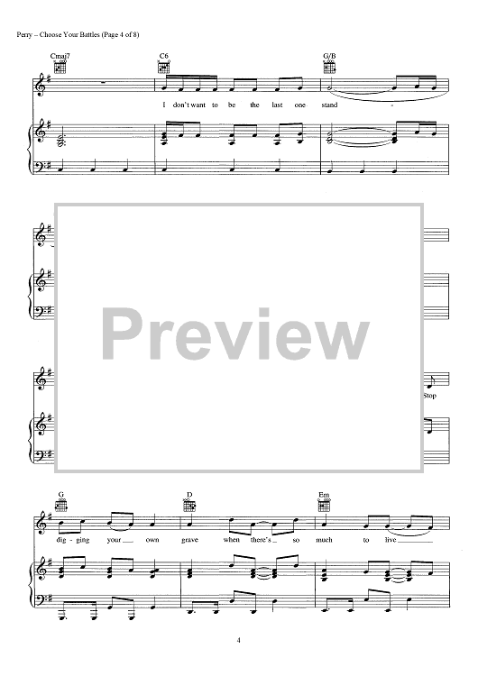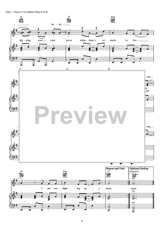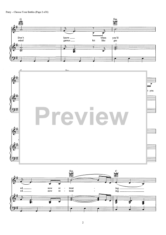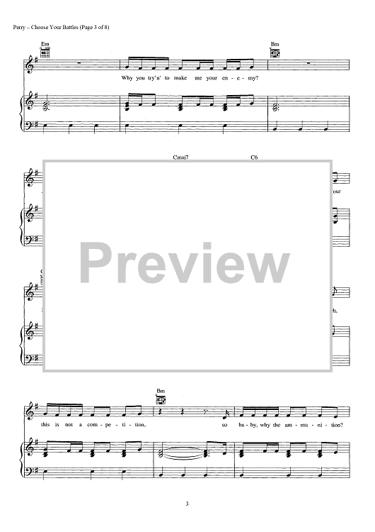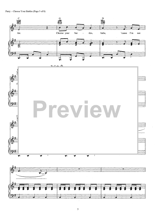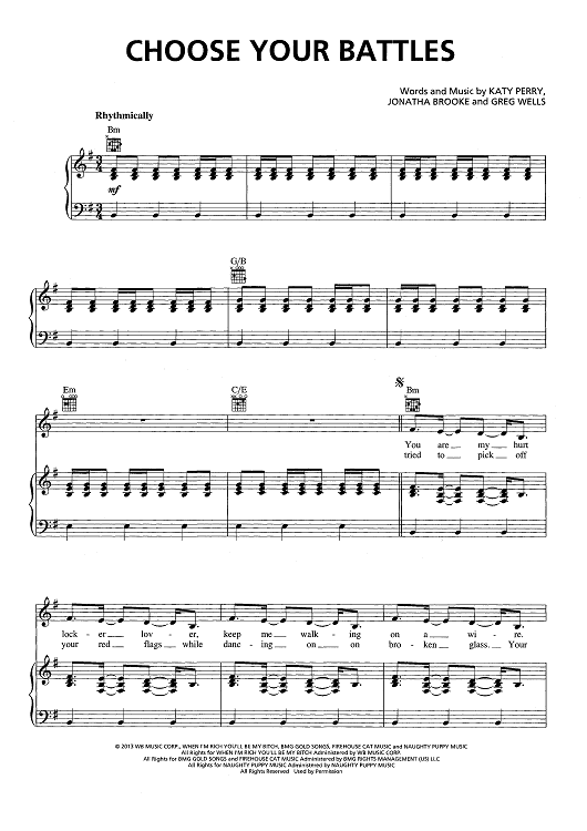 Digital Sheet Music for Choose Your Battles by Greg Wells, Jonatha Brooke, Katy Perry scored for Piano/Vocal/Chords; id:442876