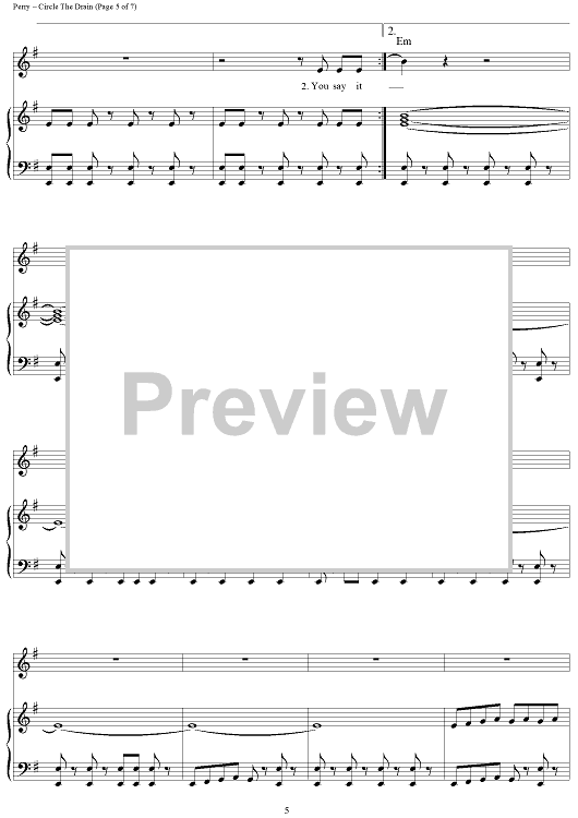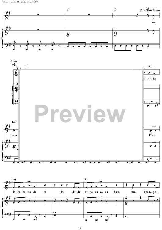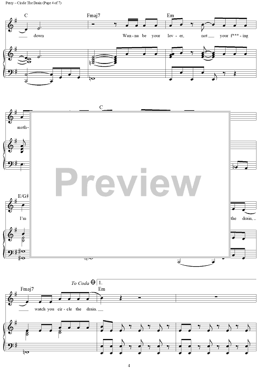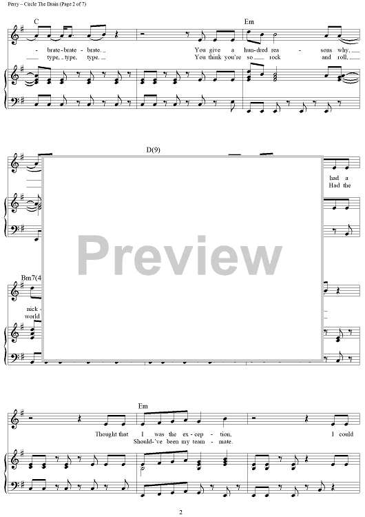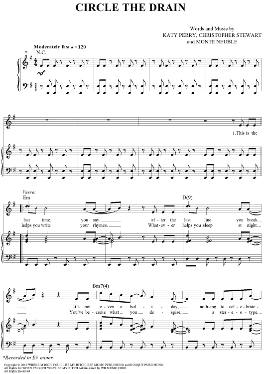 Digital Sheet Music for Circle the Drain by Tricky Stewart, Katy Perry, Lamont Neuble scored for Piano/Vocal/Chords; id:453431