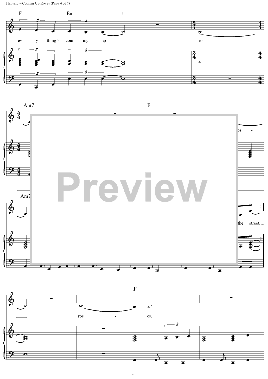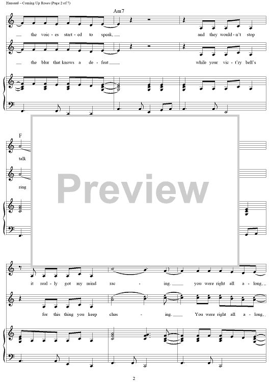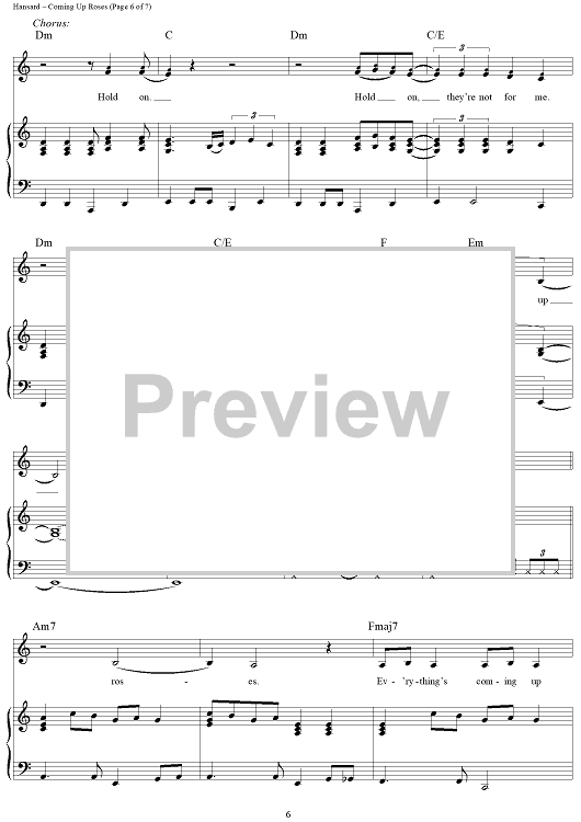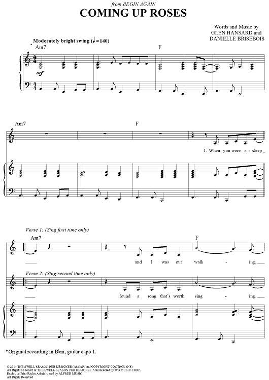 Digital Sheet Music for Coming Up Roses by Danielle Brisebois, Glen Hansard scored for Piano/Vocal/Chords; id:442941