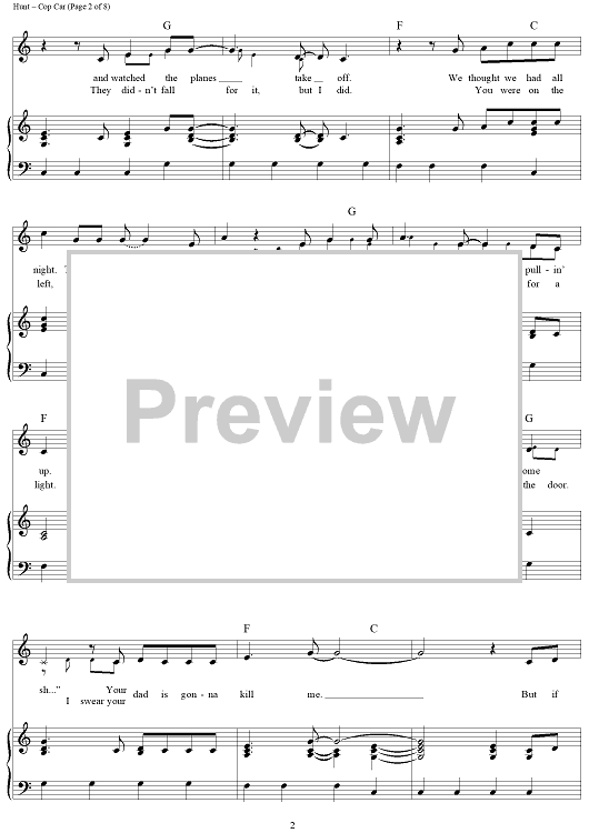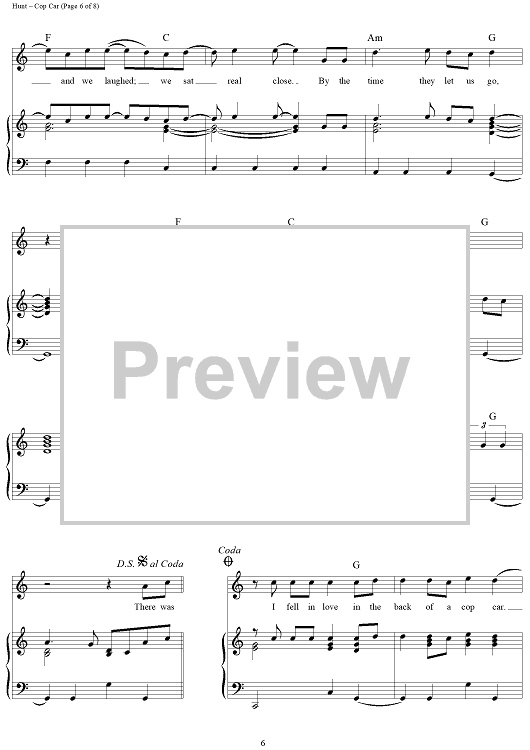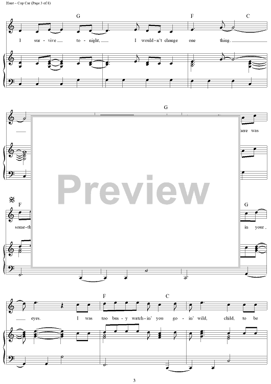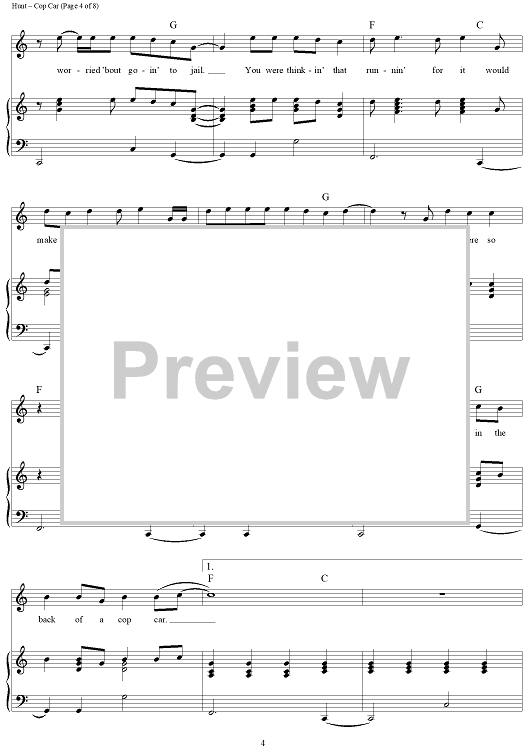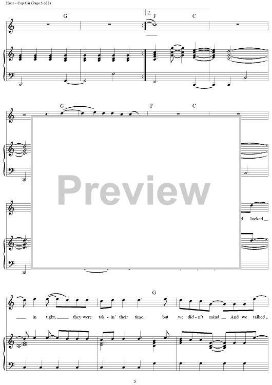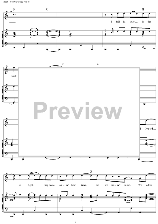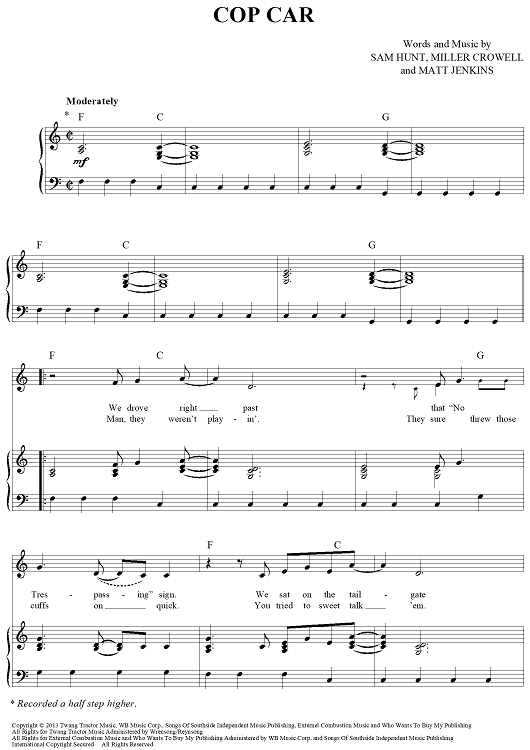 Digital Sheet Music for Cop Car by Sam Hunt, Miller Crowell, Matt Jenkins, Keith Urban scored for Piano/Vocal/Chords; id:441853