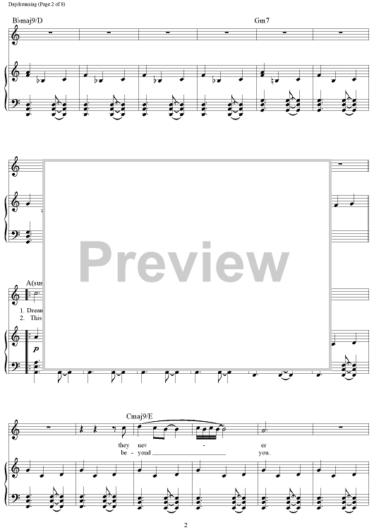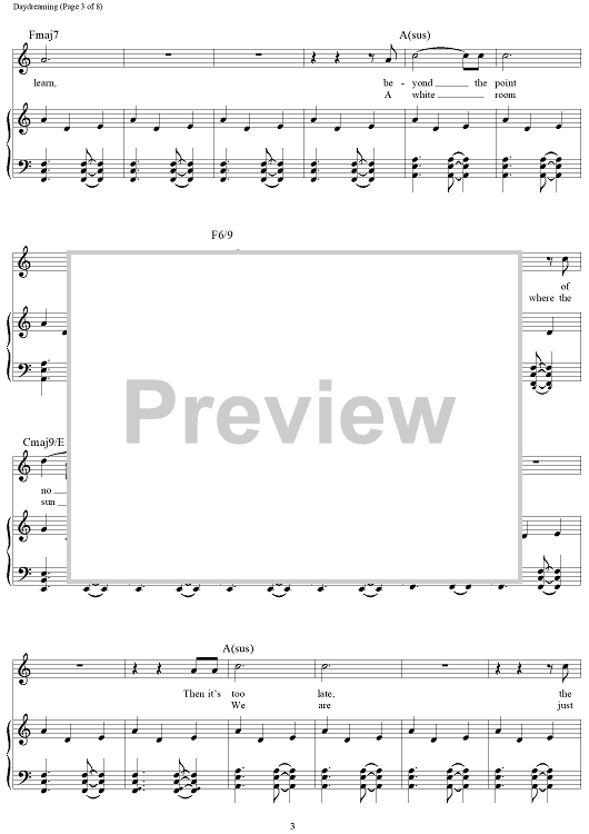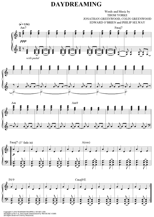 Digital Sheet Music for Daydreaming by Thomas Yorke, Jonathan Greenwood, Philip Selway, Coz, Edward O'Brien, Radiohead scored for Piano/Vocal/Chords; id:464210