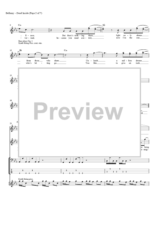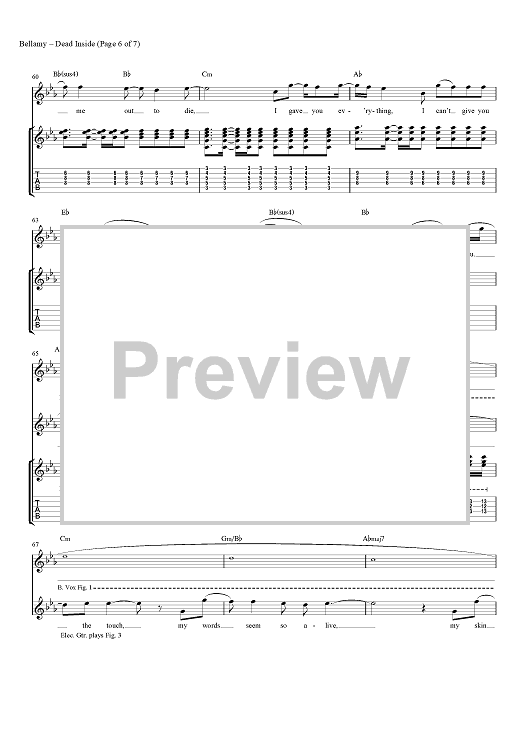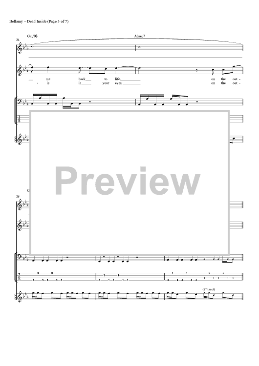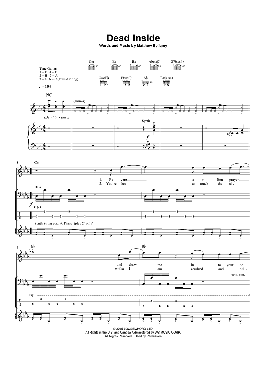 Digital Sheet Music for Dead Inside by Matthew Bellamy, Muse scored for Guitar Tab; id:453036