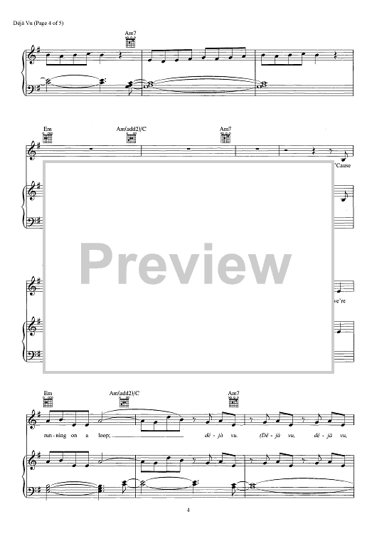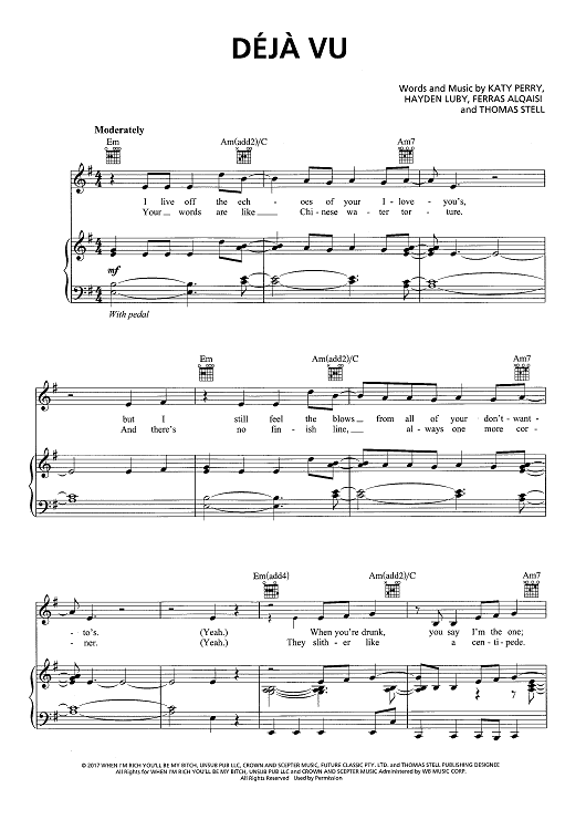 Digital Sheet Music for Déjà Vu by Katy Perry, Ferras Alqaisi, Hayden Luby, Thomas Stell scored for Piano/Vocal/Chords; id:466250