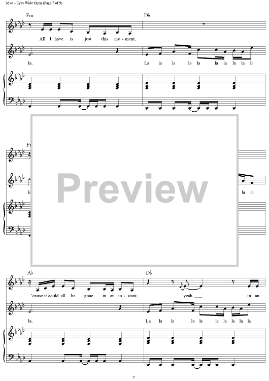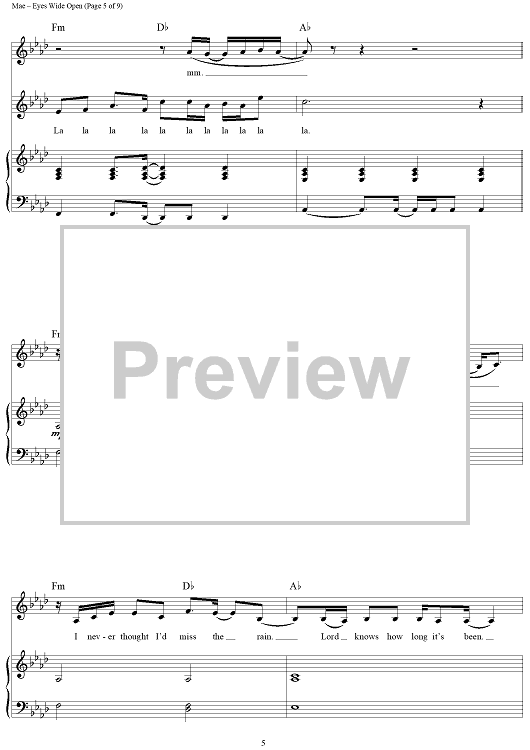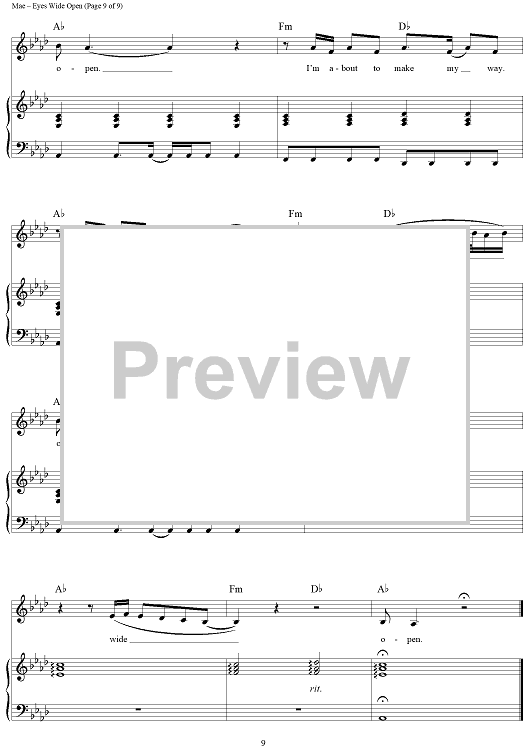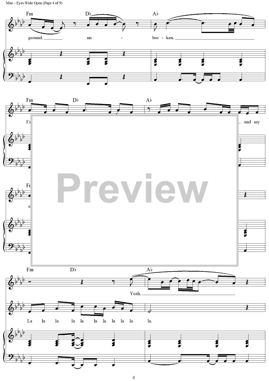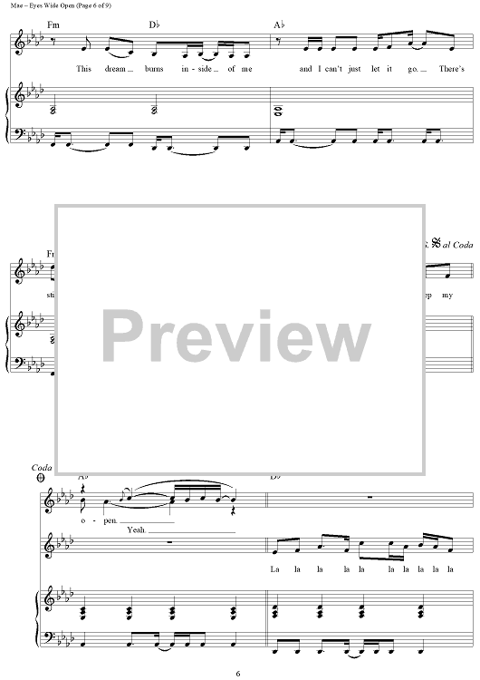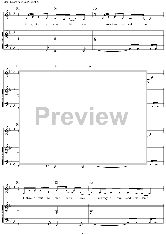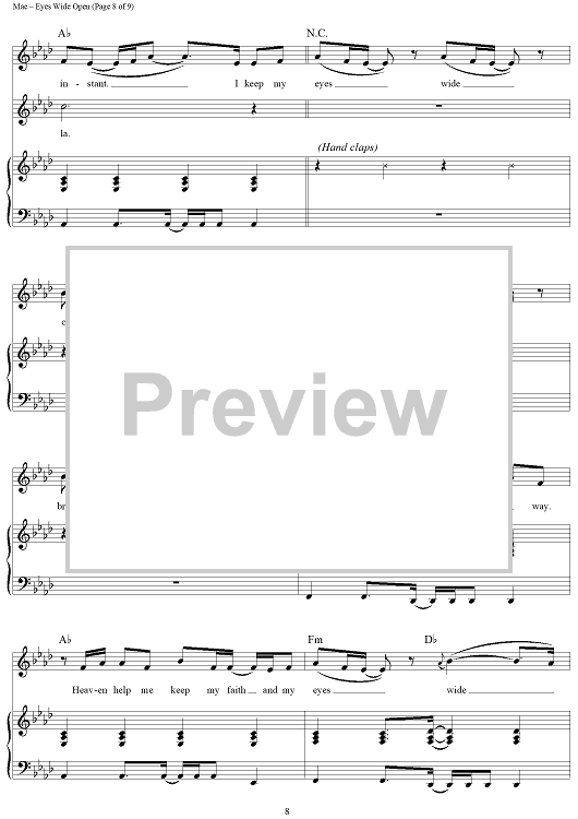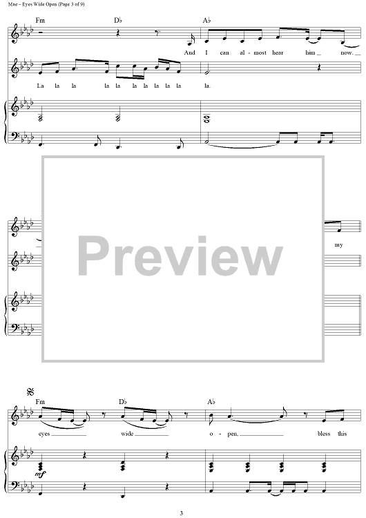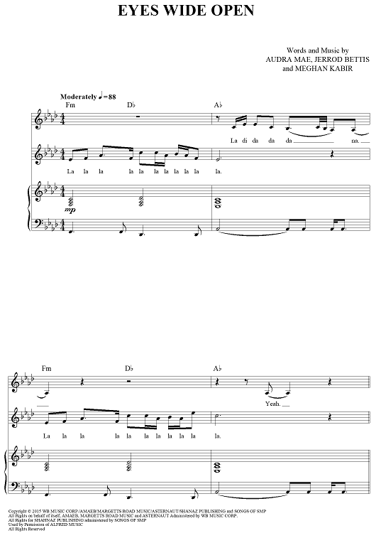 Digital Sheet Music for Eyes Wide Open by Meghan Kabir, Audra Mae, Jerrod Bettis, Sabrina Carpenter scored for Piano/Vocal/Chords; id:452148