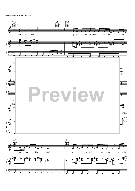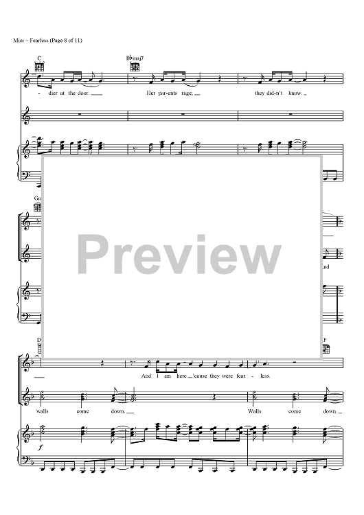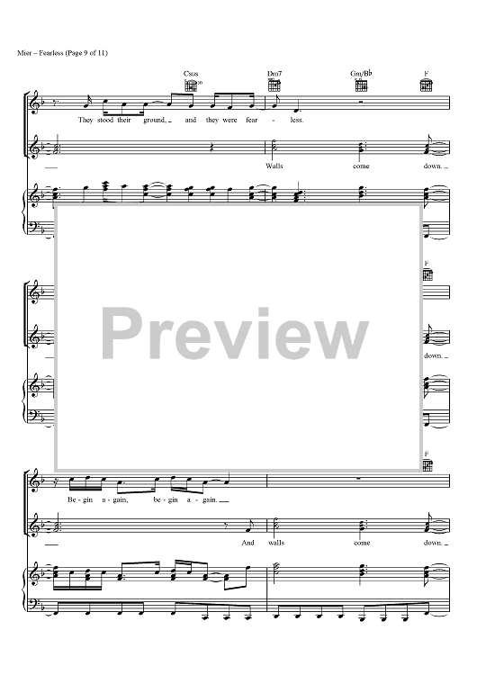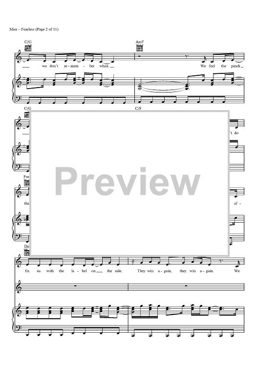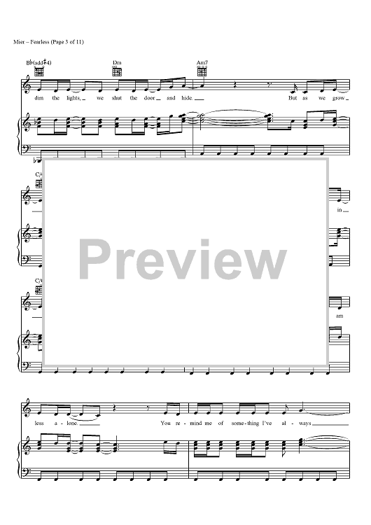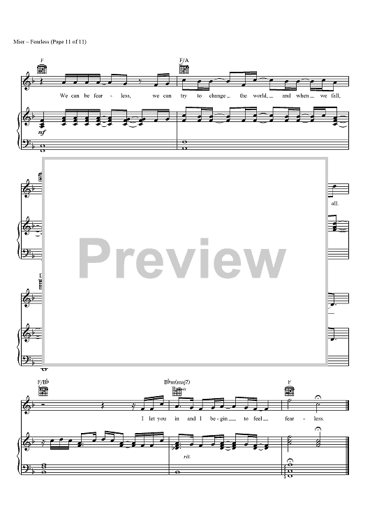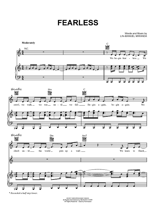 Digital Sheet Music for Fearless by Lin-Manuel Miranda, Mandy Gonzalez scored for Piano/Vocal/Chords; id:466212