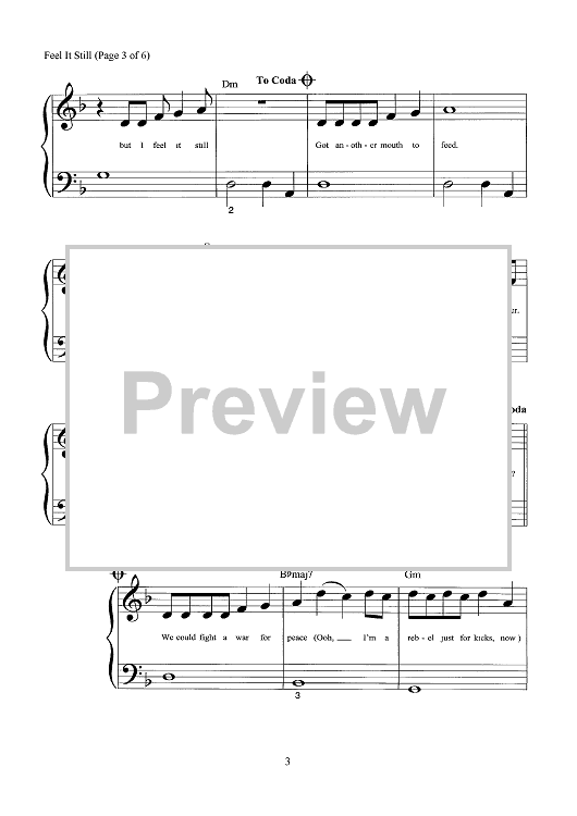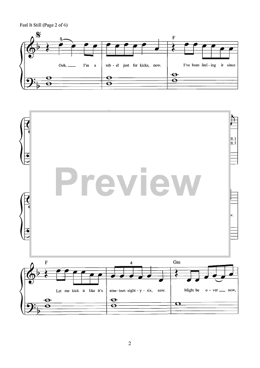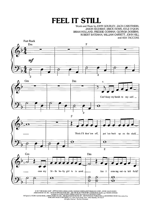 Digital Sheet Music for Feel It Still by William Garrett, Brian Holland, Freddie Gorman, Georgia Dobbins, Robert Bateman, John Hill, Portugal. The Man, Zachary Carothers, John Gourley, Kyle O'Quin, Jason Sechrist, Asa Taccone, Erick Howk scored for Big Note Piano; id:466779