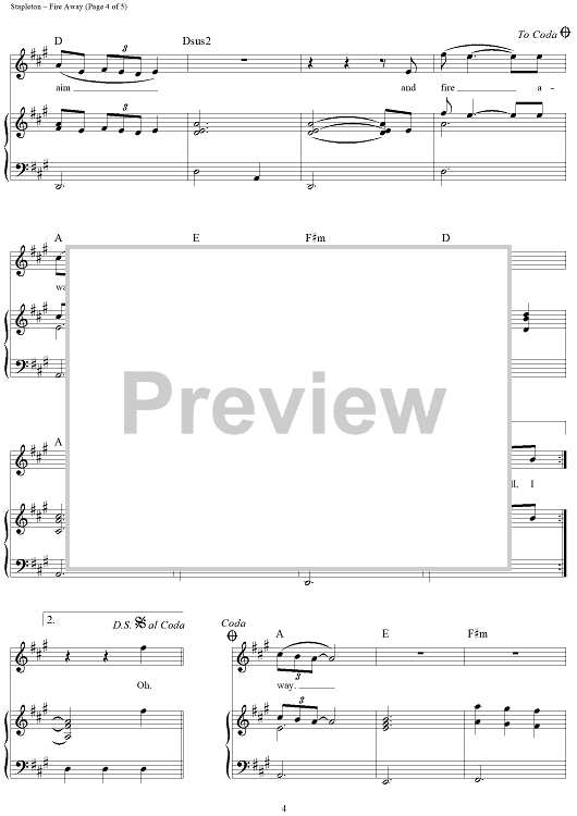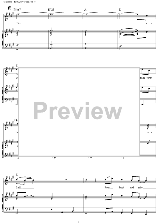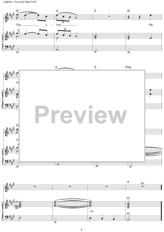 Digital Sheet Music for Fire Away by Chris Stapleton, Danny Green scored for Piano/Vocal/Chords; id:459492