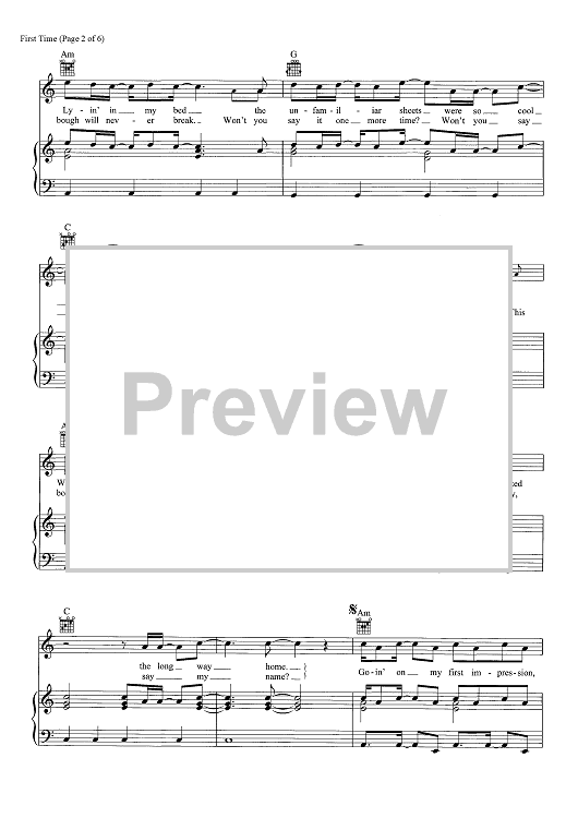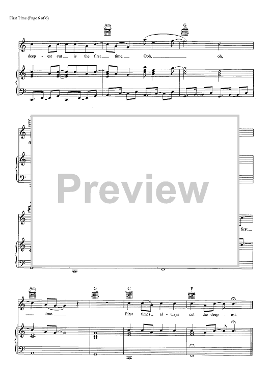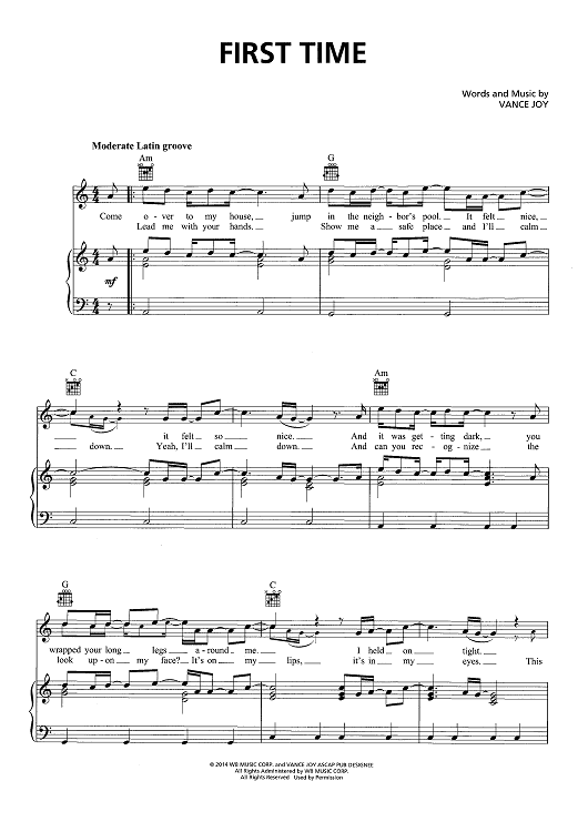 Digital Sheet Music for First Time by Vance Joy scored for Piano/Vocal/Chords; id:458993