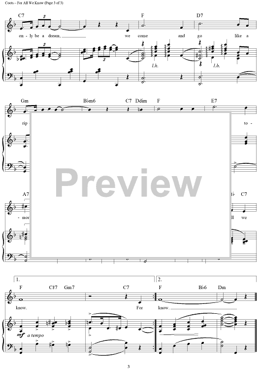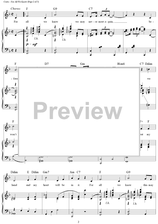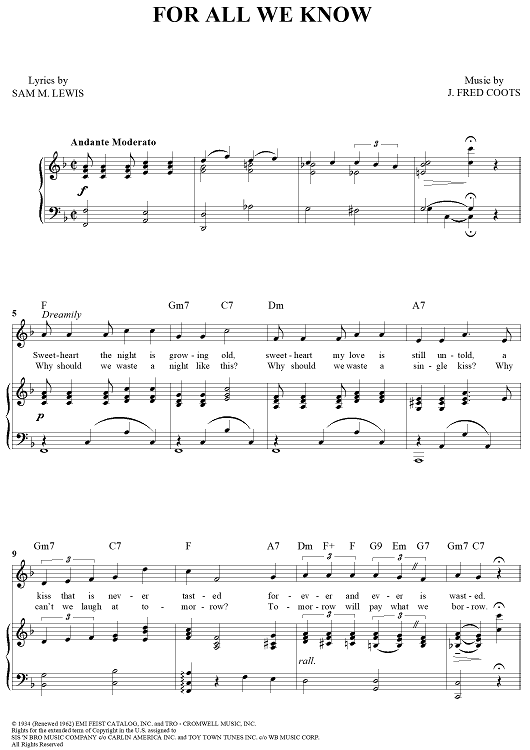 Digital Sheet Music for For All We Know by J. Fred Coots, Samuel M. Lewis scored for Piano/Vocal/Chords; id:433101