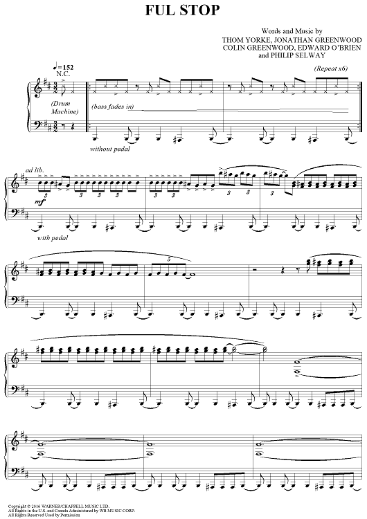 Digital Sheet Music for Ful Stop by Thomas Yorke, Jonathan Greenwood, Philip Selway, Coz, Edward O'Brien, Radiohead scored for Piano/Vocal/Chords; id:464213