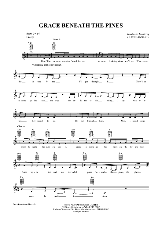 "Grace Beneath the Pines" Sheet Music by Glen Hansard