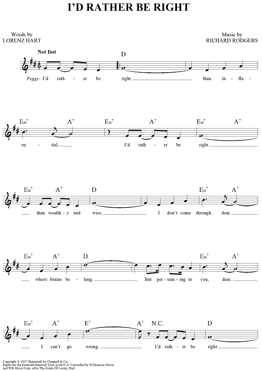 Digital Sheet Music for I'd Rather Be Right by Richard Rodgers, Lorenz Hart scored for Lead Sheet; id:447225