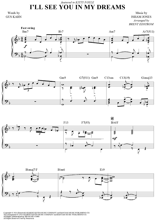 Digital Sheet Music for I'll See You In My Dreams by Gus Kahn, Isham Jones, Brent Edstrom scored for Piano Solo; id:458713