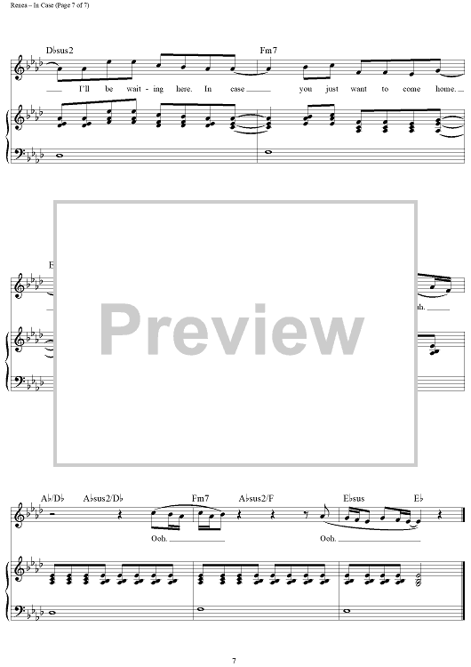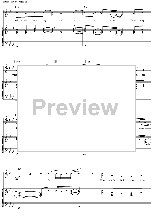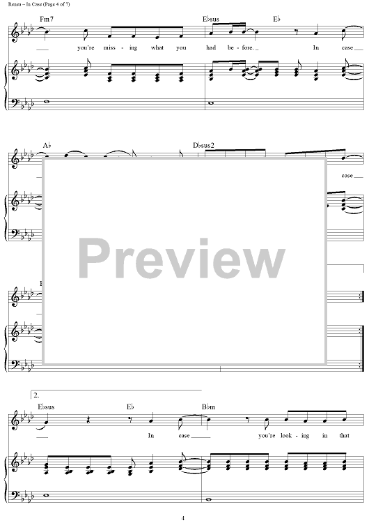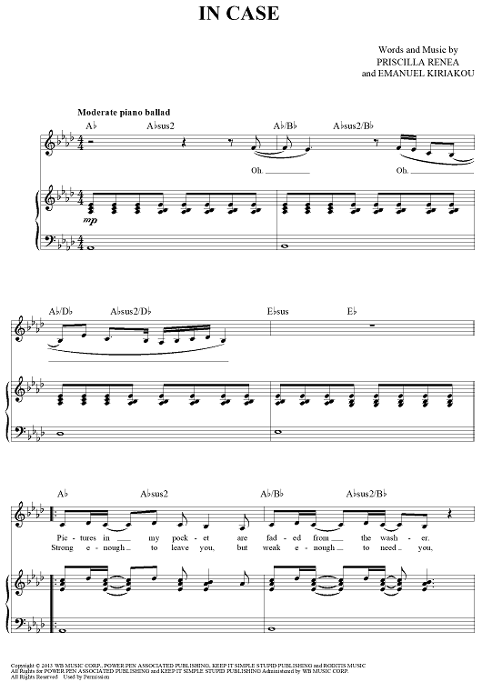 Digital Sheet Music for In Case by Emanuel Kiriakou, Demi Lovato, Priscilla Renea scored for Piano/Vocal/Chords; id:442932