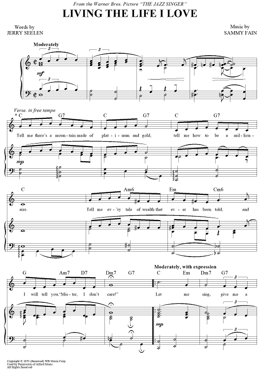 Digital Sheet Music for Living The Life I love by Sammy Fain, Jerry Seelen scored for Piano/Vocal/Chords; id:454436